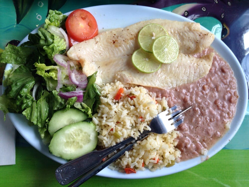 Tender skirt seasoned with garlic, salt & pepper. Served with rice beans and tortillas
